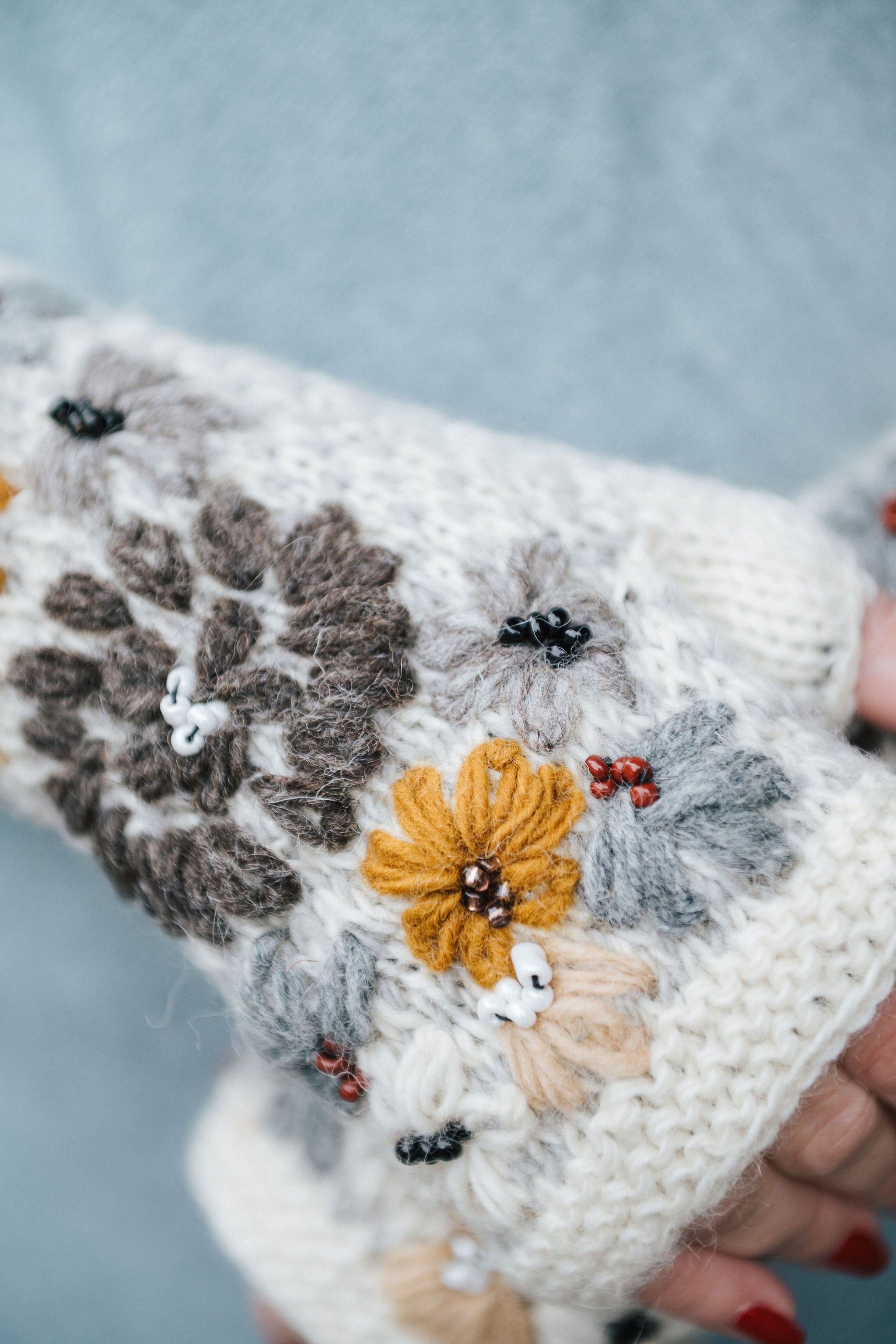 Finished with a colorful hand embroidered and fleece lined, this hand knitted woolen beanie is sure to brighten up your outfit.
