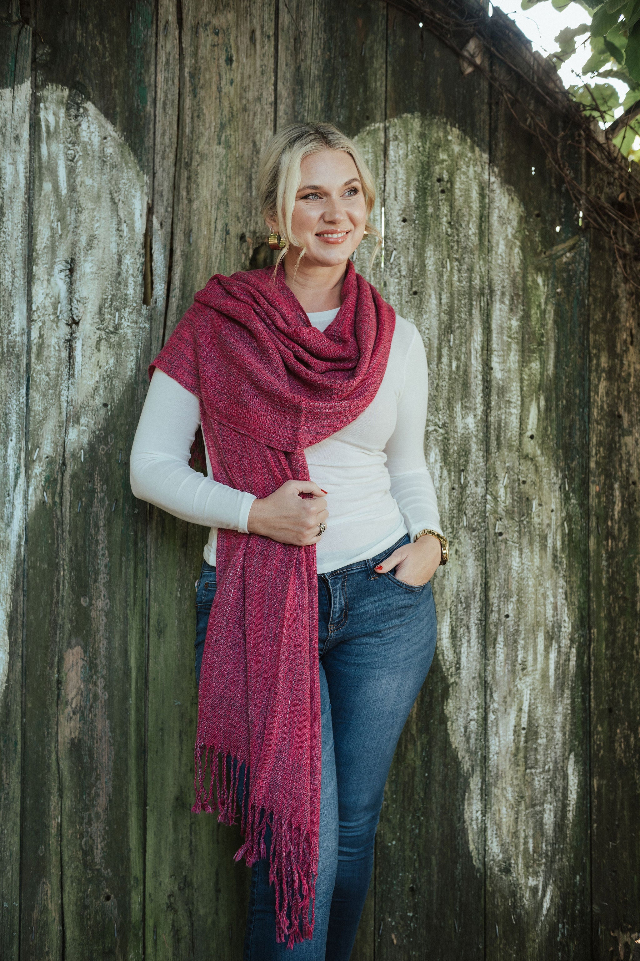 Wrap yourself in luxurious comfort with this generously sized boucle scarf in a stunning raspberry pink. The textured boucle weave creates visual depth and tactile interest, while the rich hue complements a wide range of skin tones and seasonal palettes. Perfect for layering over coats, draping elegantly around your shoulders, or styling as a versatile accessory that transitions seamlessly from day to evening wear.