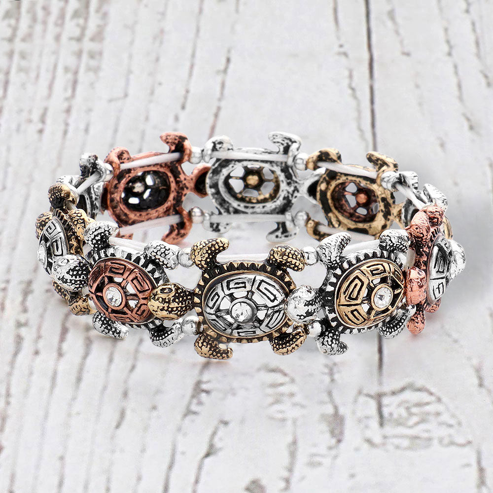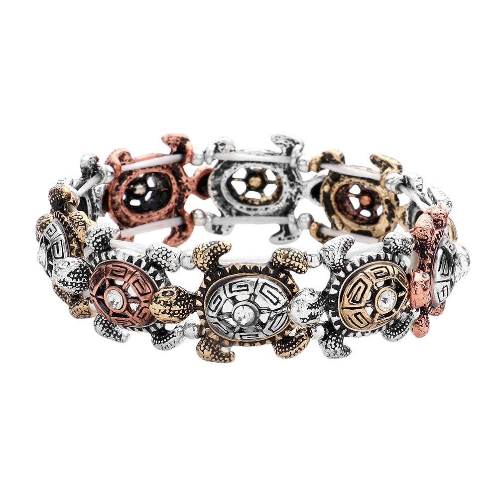 • Unique stretch bracelet featuring linked turtle motifs with engraved detailing, adding a playful yet stylish touch to any accessory collection. Designed for comfort and charm, this piece is perfect for everyday wear or gifting to someone who loves expressive jewelry.