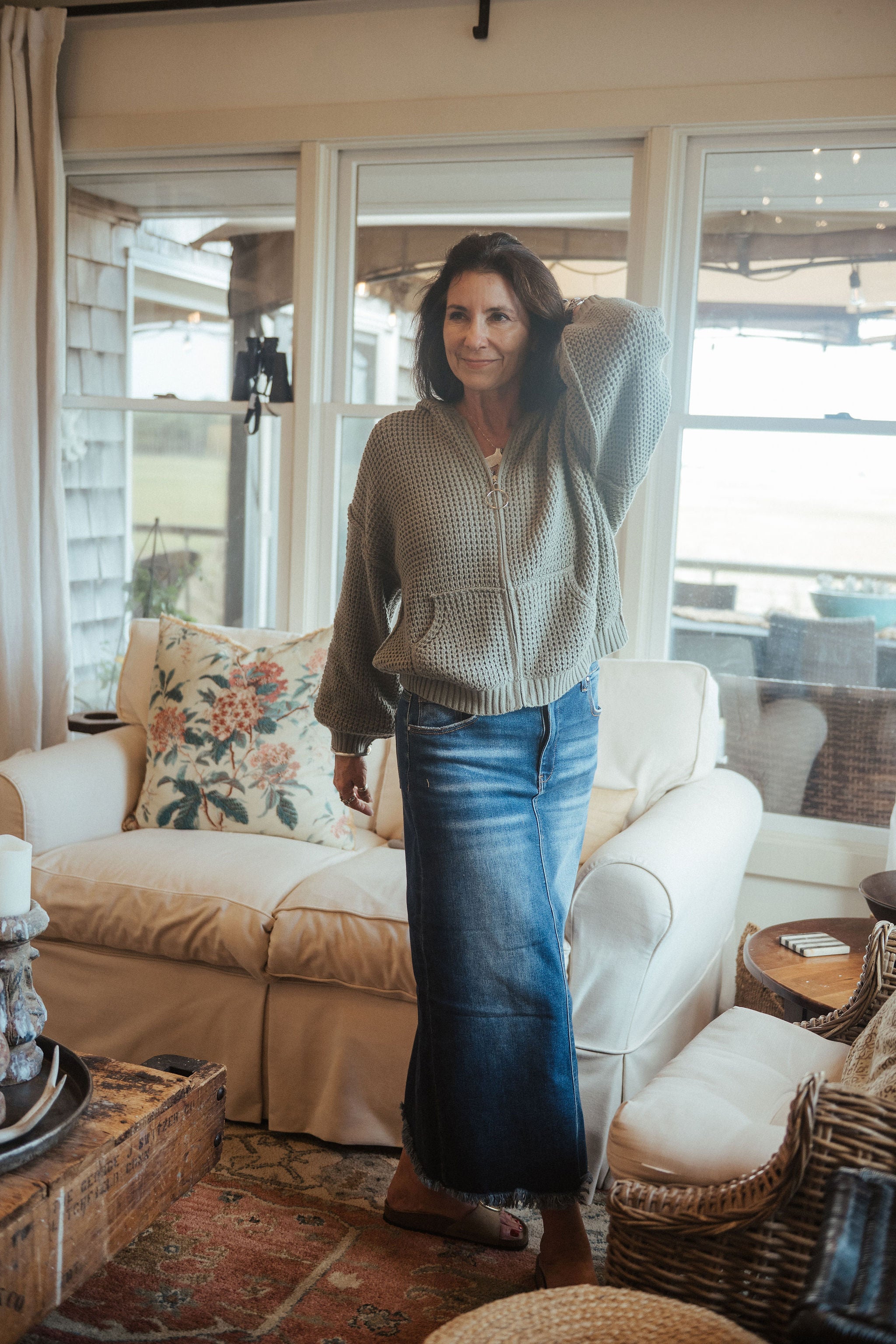 - HIGH RISE FRAYED LONG PENCIL SKIRT