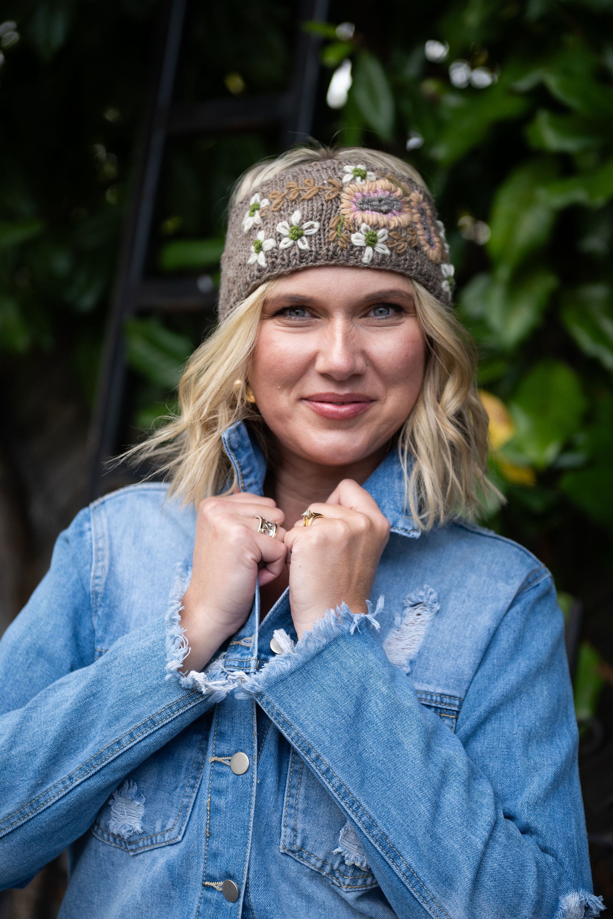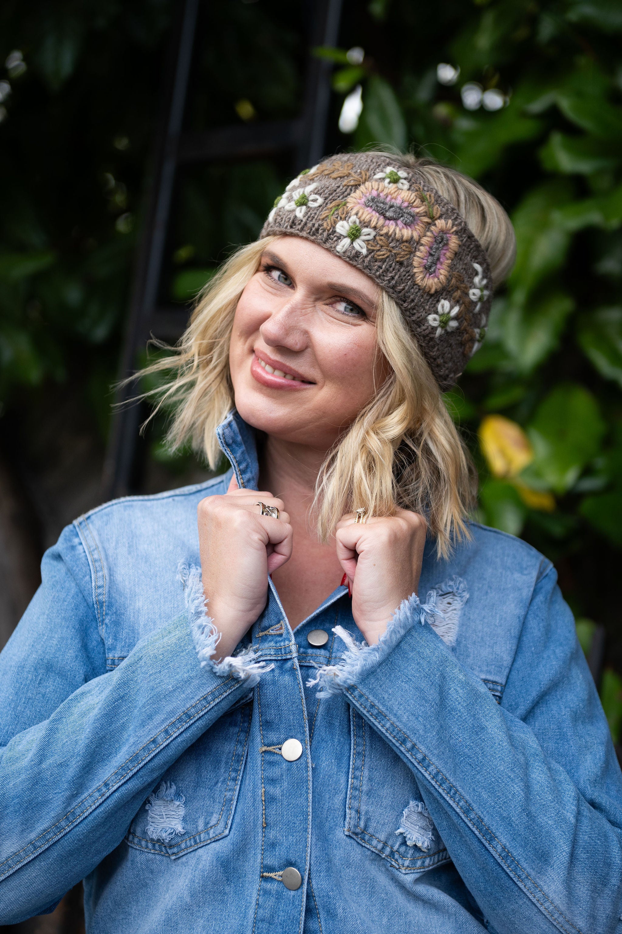 All Hats, hand-warmer, Headbands and Mittens are fully lined with lightweight fleece for additional insulation and comfort. "Enhanced with vibrant hand embroidery and lined with cozy fleece, this hand-knitted woolen beanie is guaranteed to add a pop of color to your ensemble. The soft fleece lining offers added warmth and comfort." Also available - matching Mitten, Hand-warmer & Head-band. Fleece lined 100% Merino Wool Hand Knit Hand Wash -