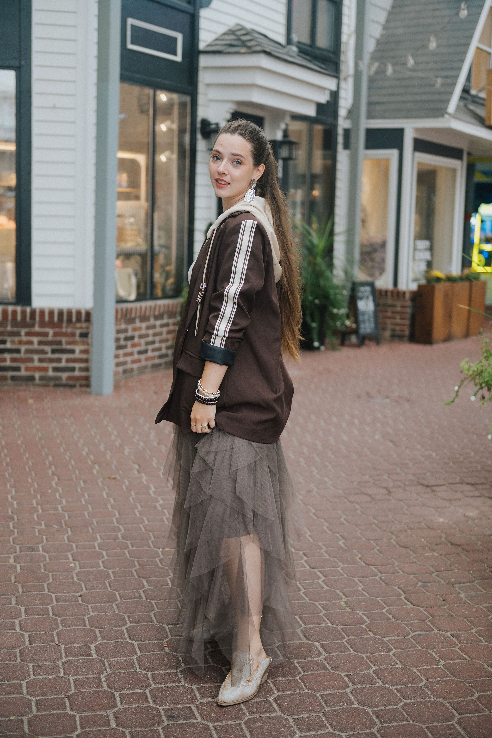 Designed in one versatile size, it features a detachable hoodie for customizable styling and added practicality.