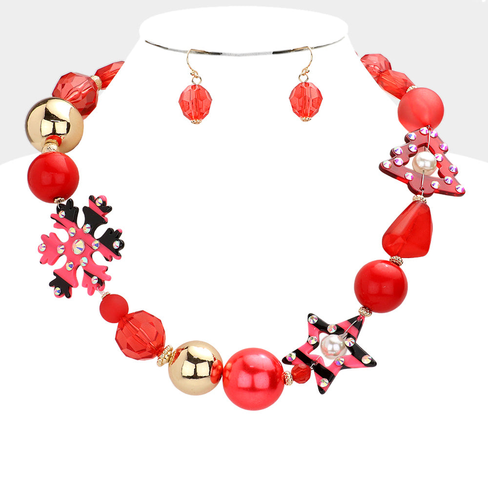 Fire Red Holiday Necklace Set