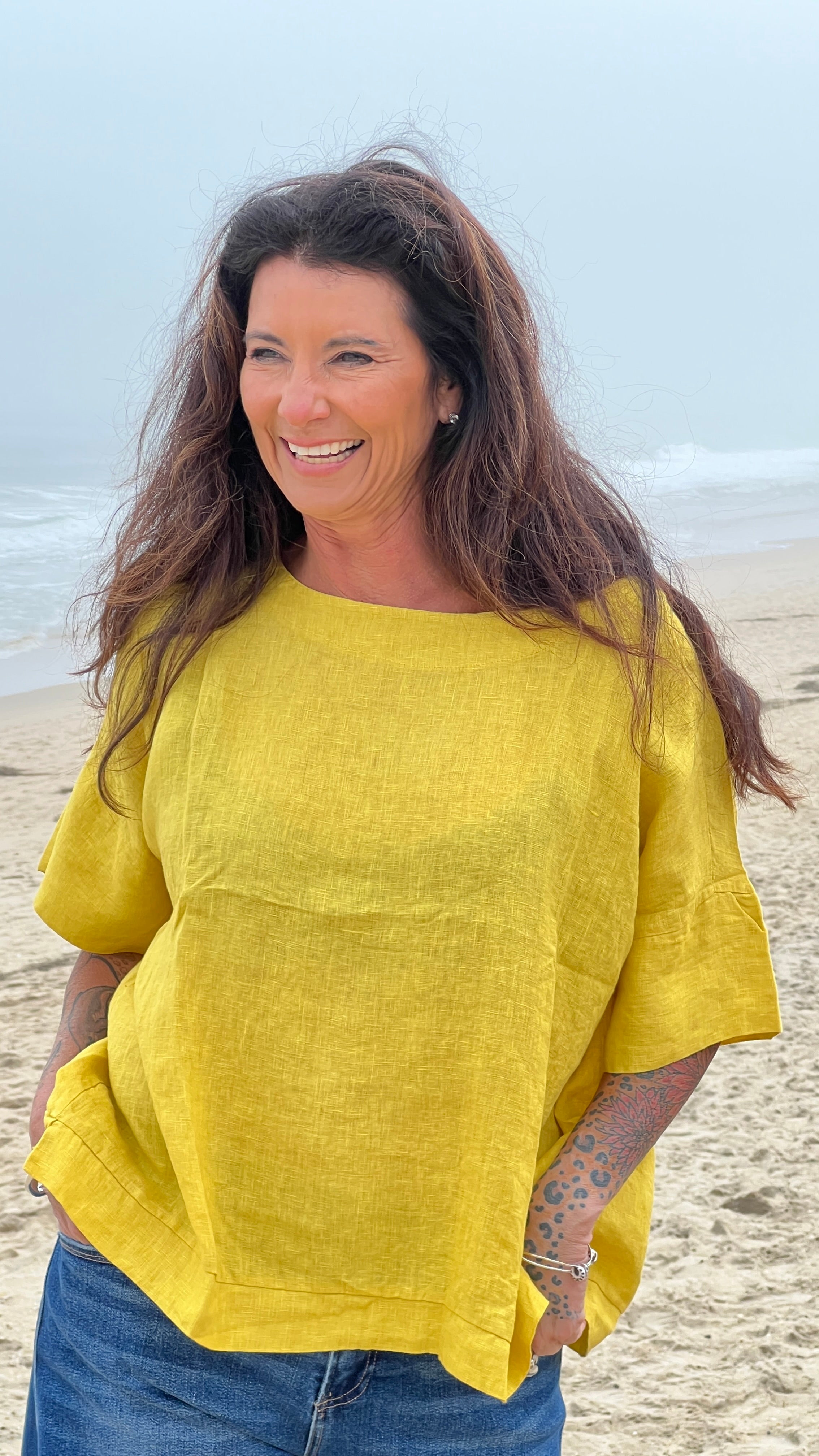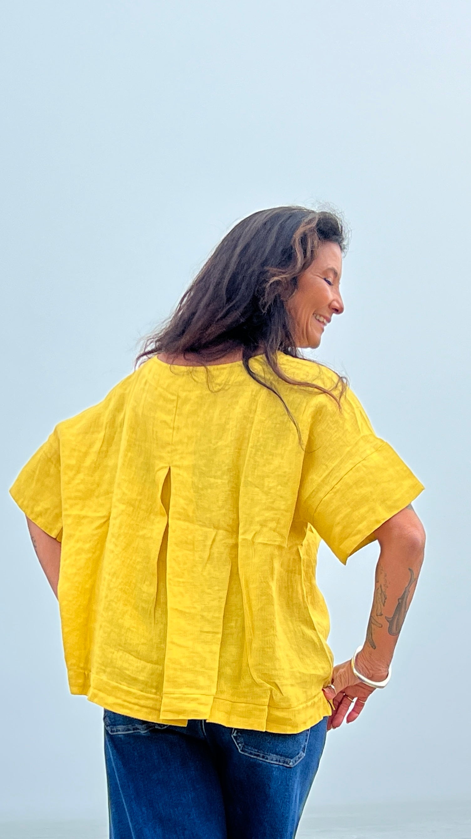 Crafted in Italy from premium linen, this classic top effortlessly pairs with any outfit. Available in crisp rich saffron