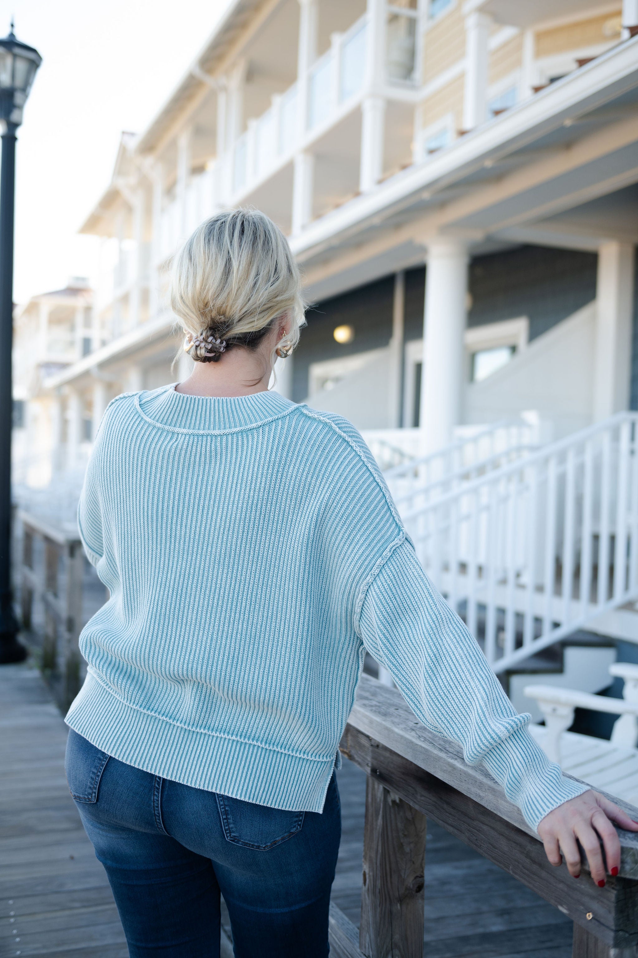 • WASHED SIDE SLIT OVERSIZED CROPPED SWEATER -