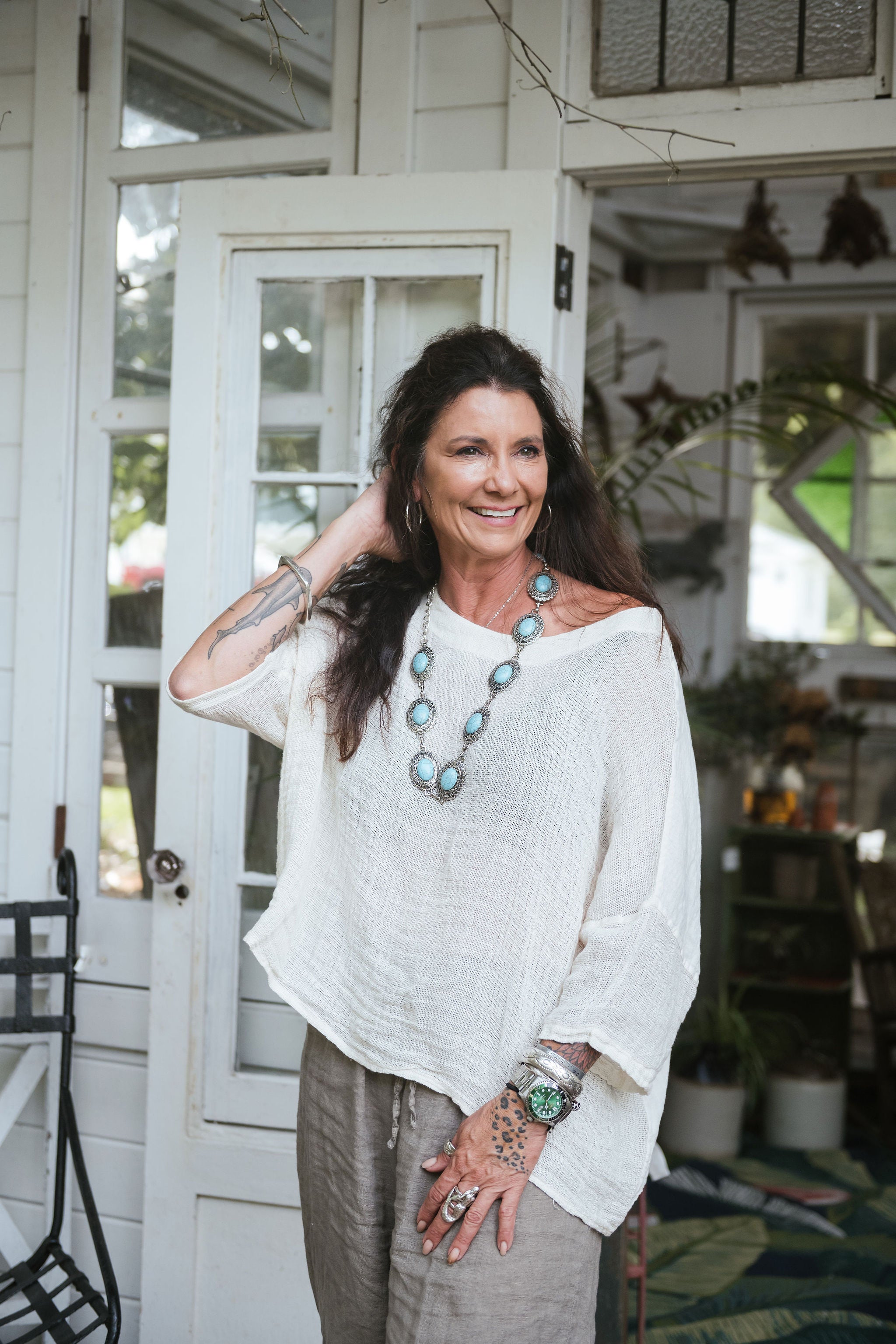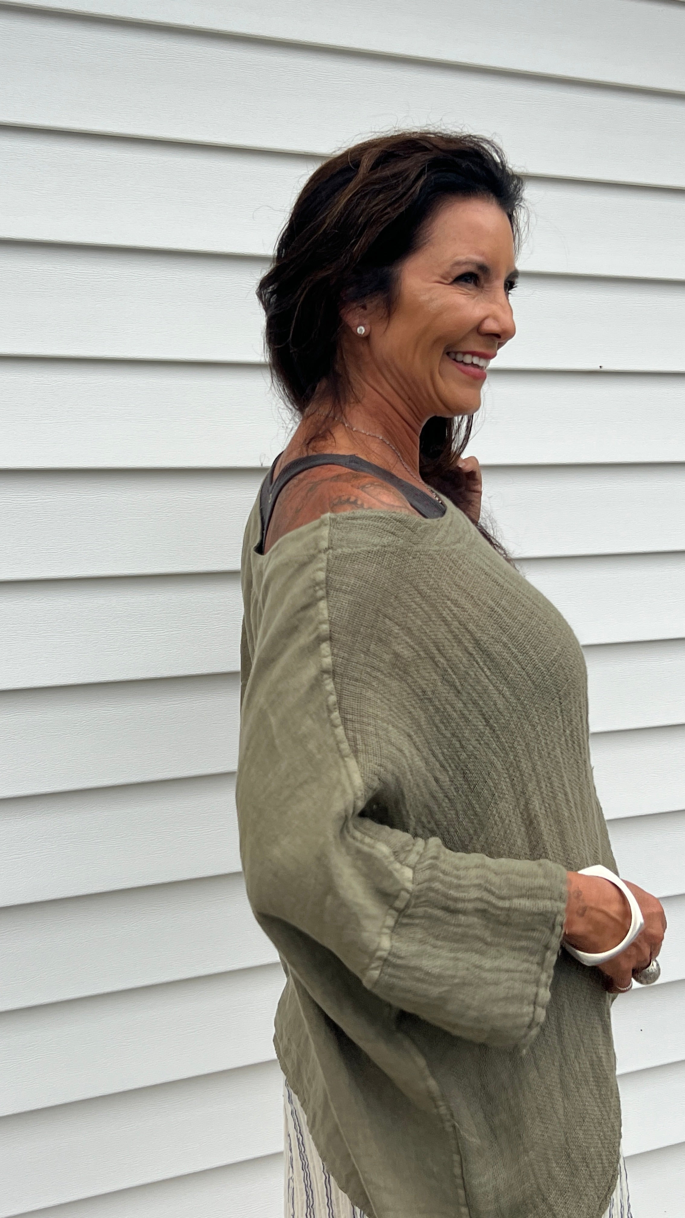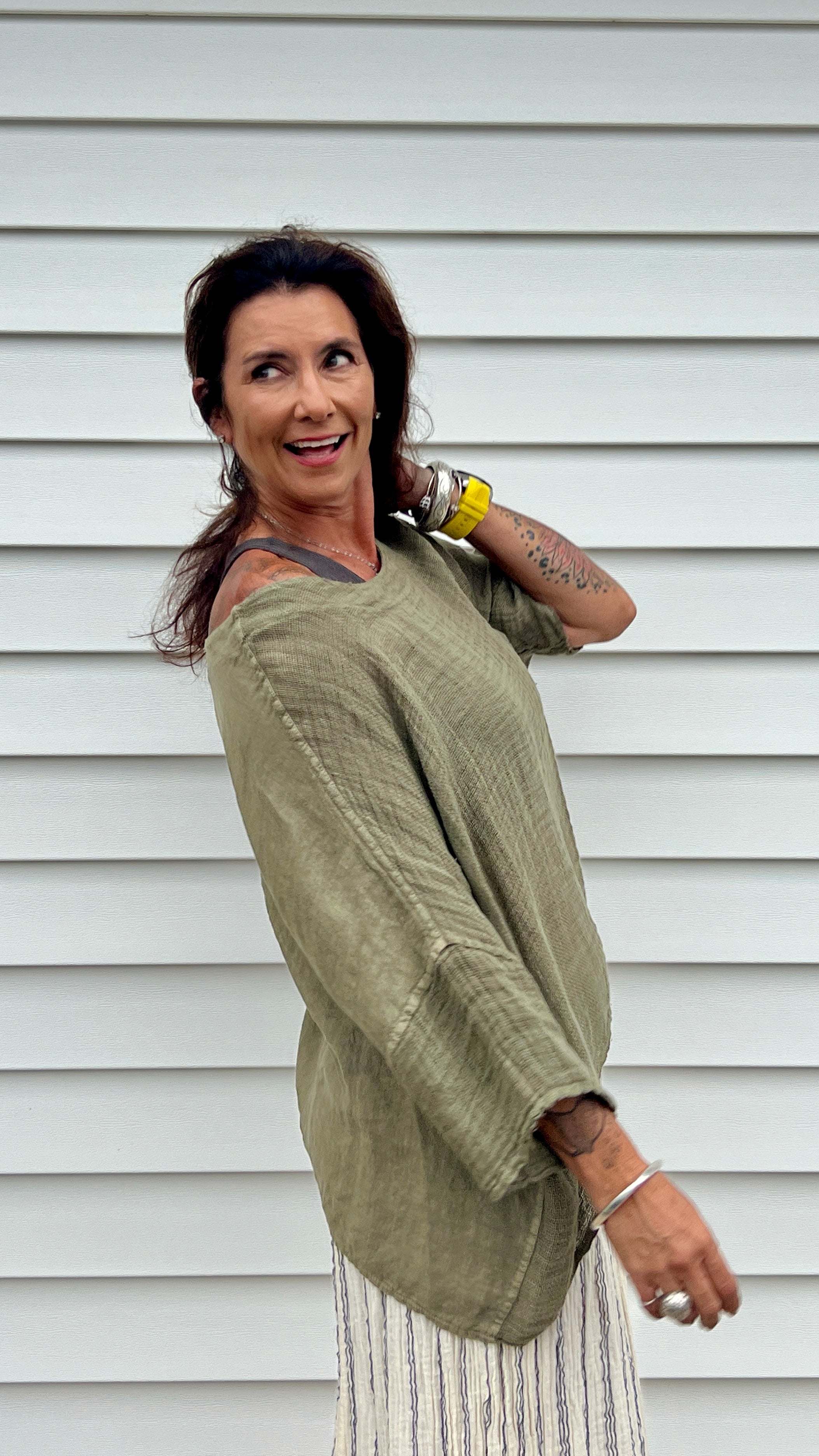 The Lina Linen Top O/S is crafted from lightweight Italian linen,