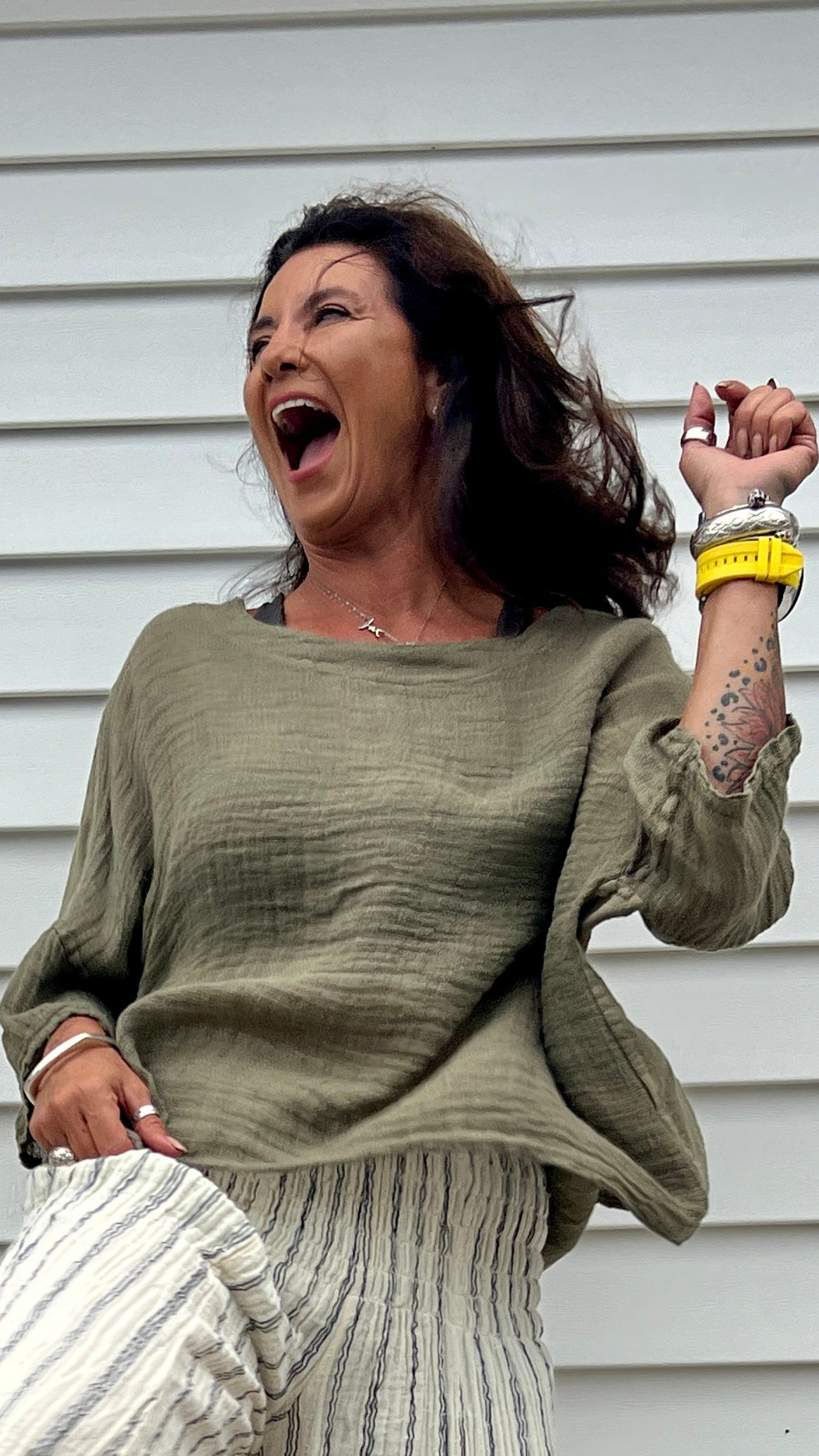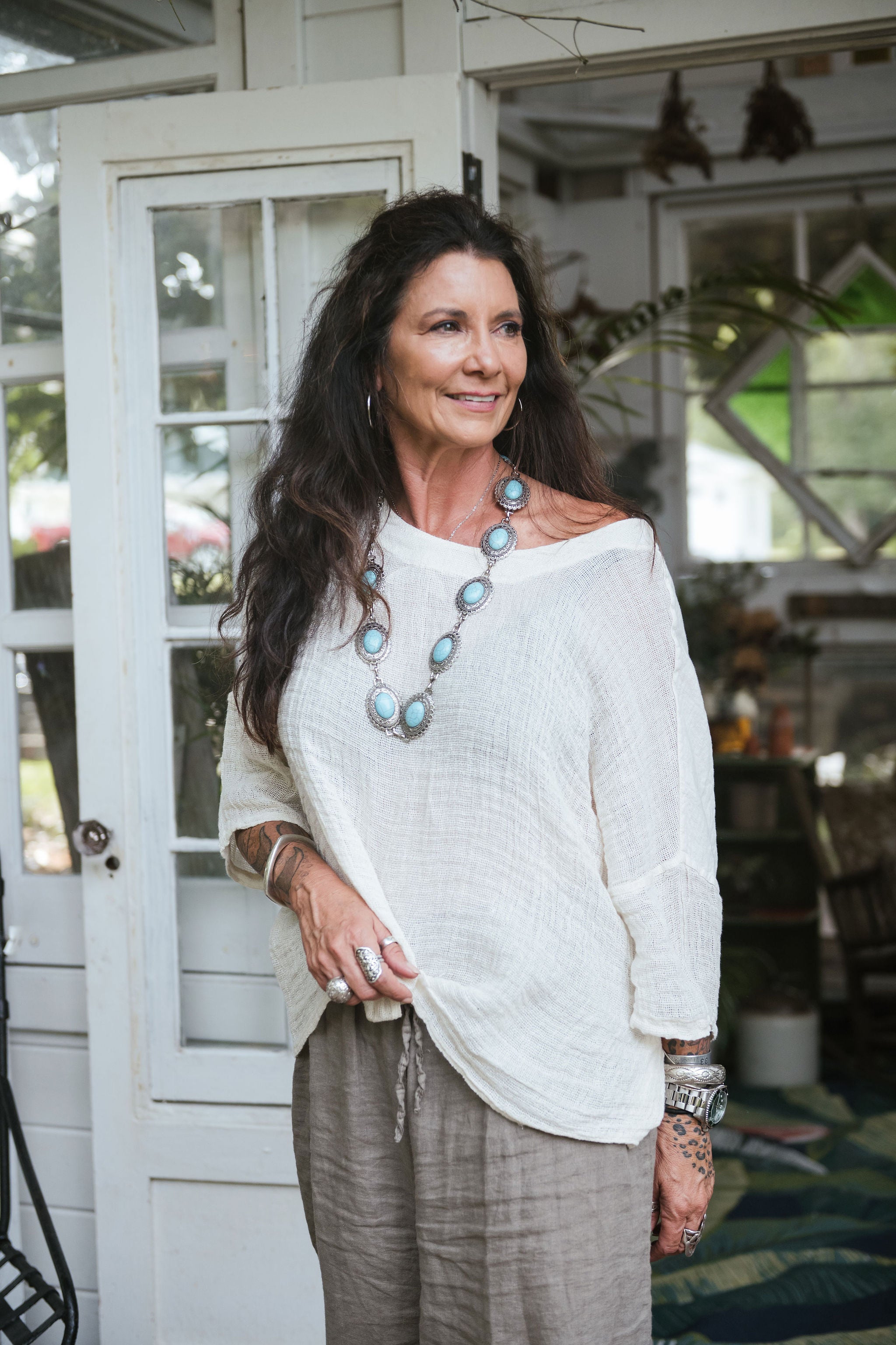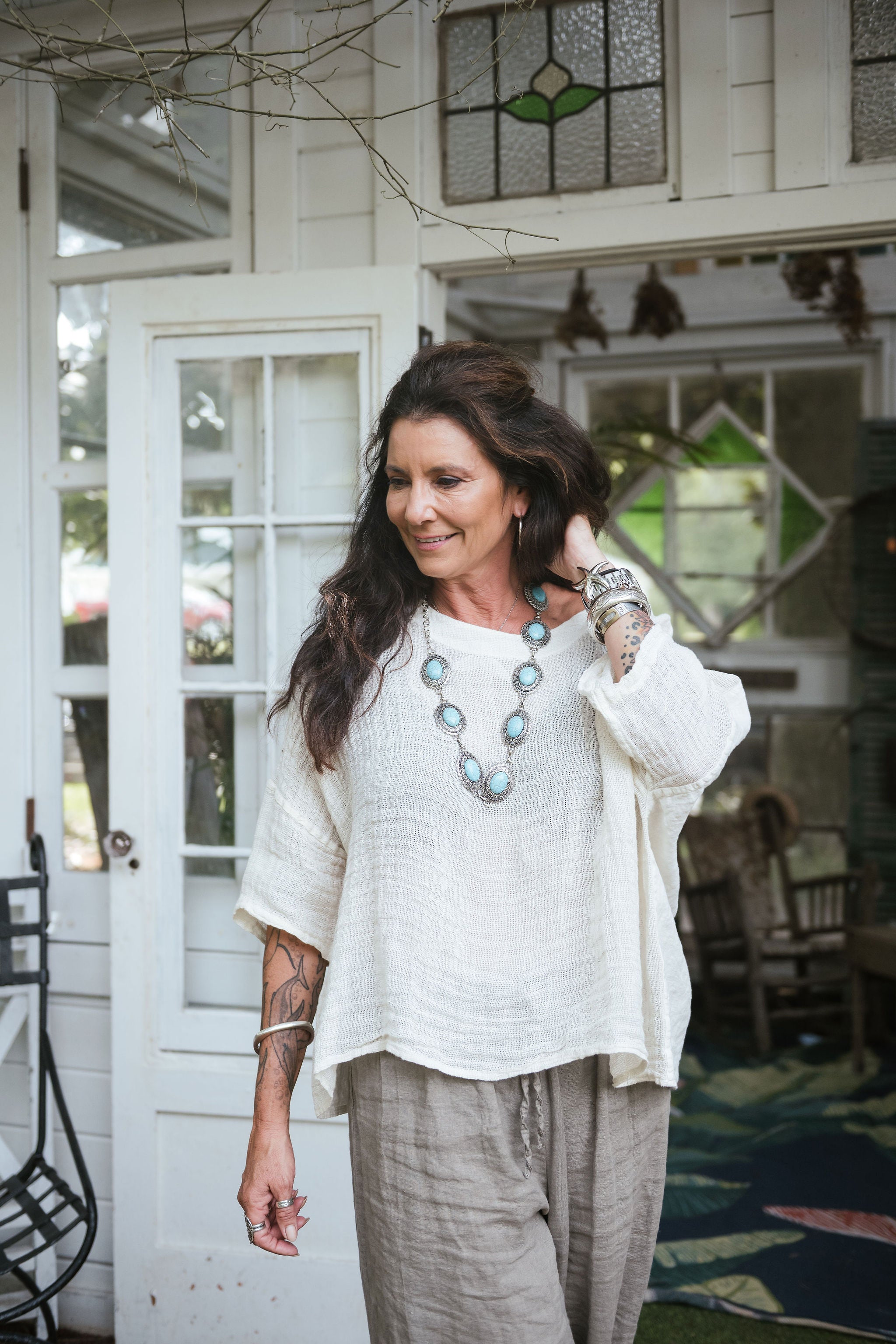 The Lina Linen Top O/S is crafted from lightweight Italian linen,