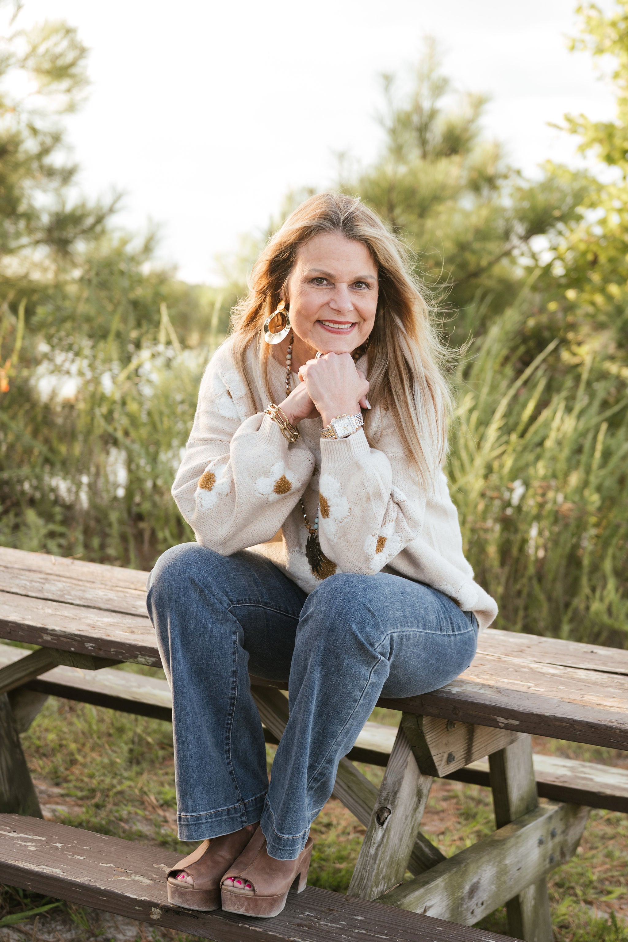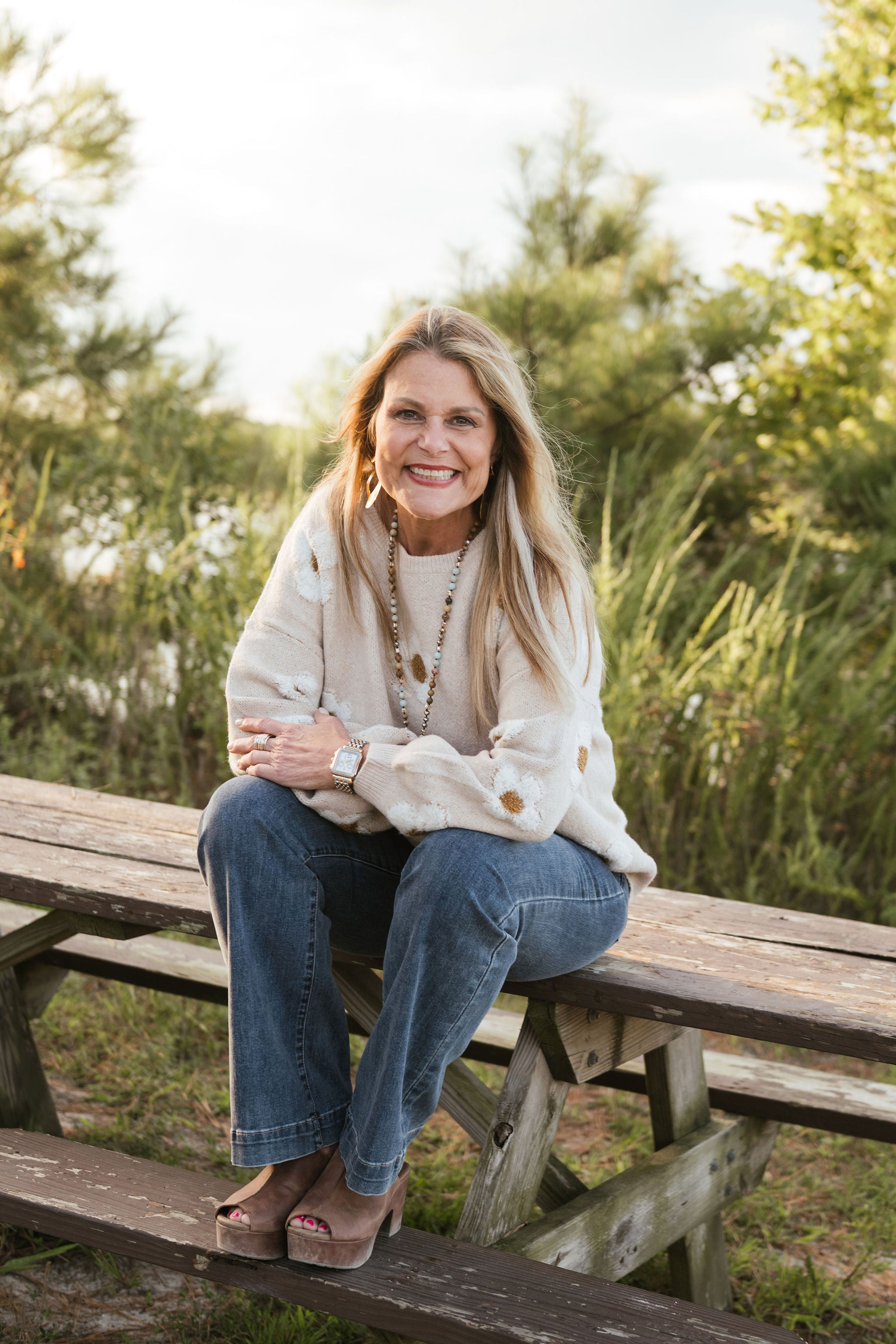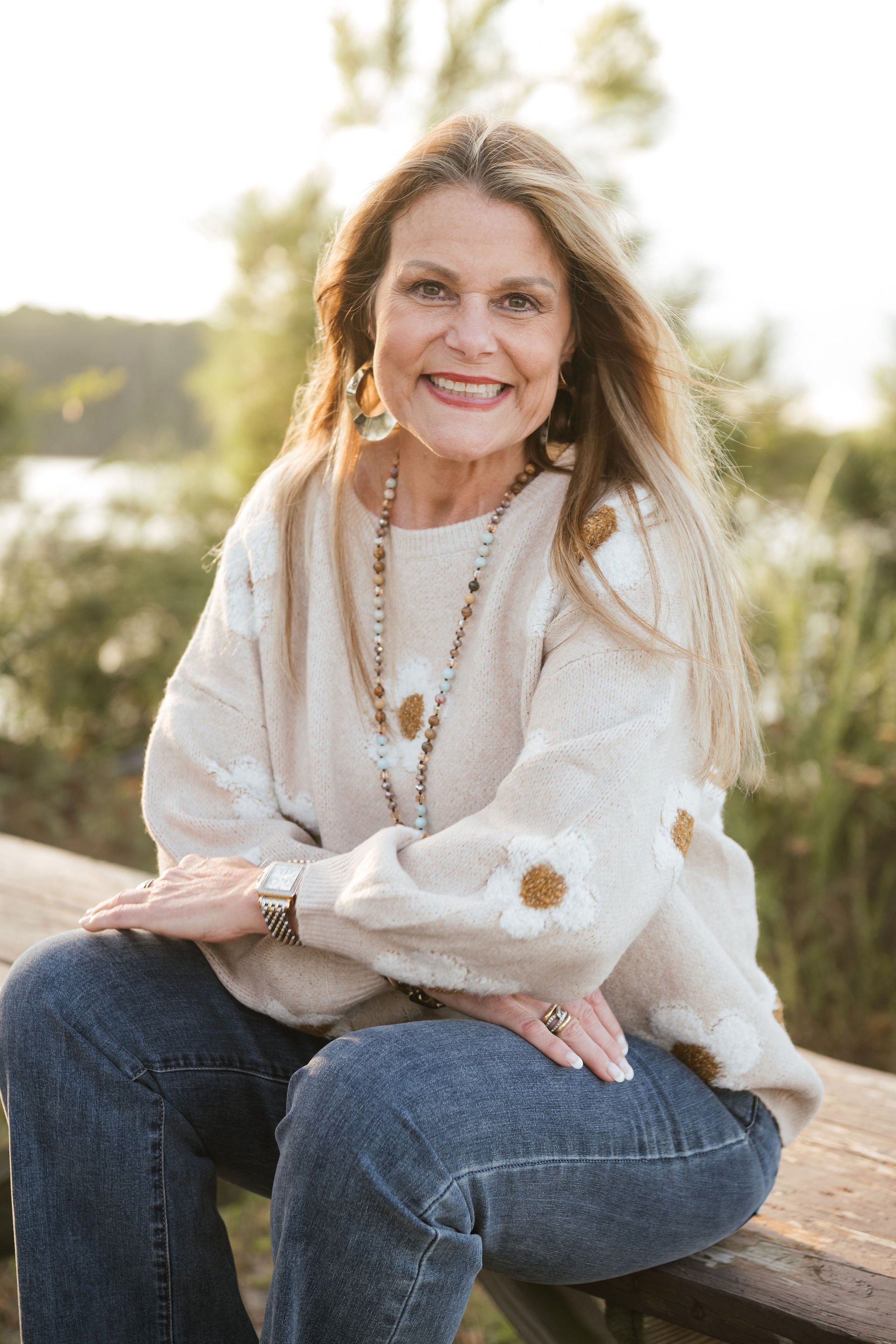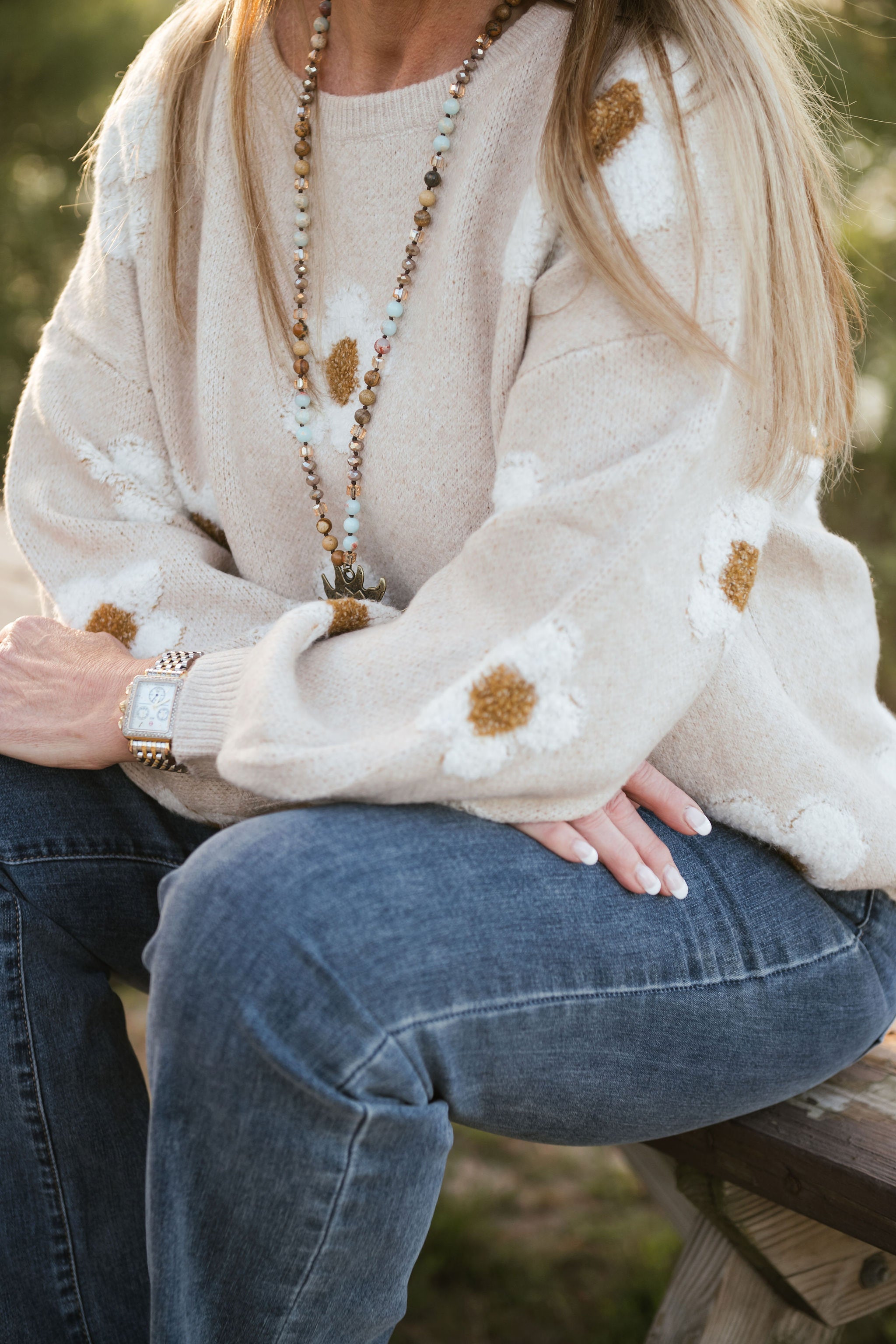 FUZZY TEXTURED DAISY FLOWER PATTERN CONTRAST SPRING SOFT SWEATER TOP COQUETTE 78% ACRYLIC 22% POLYESTER - MADE IN CHINA
