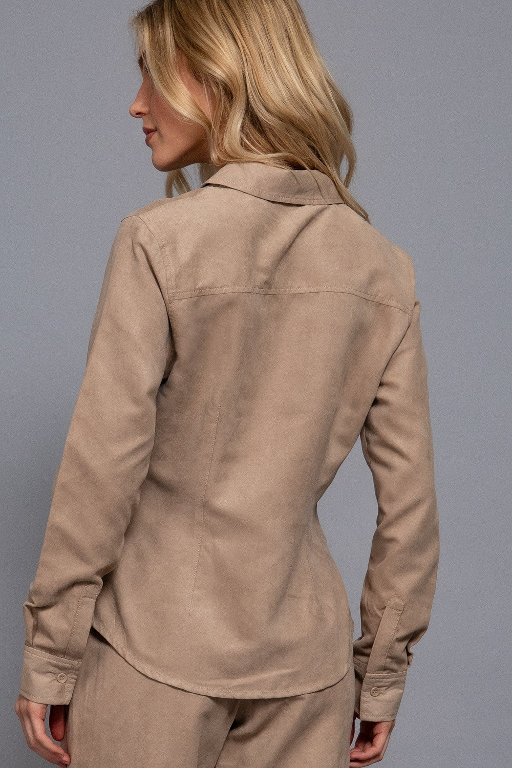 - LONG SLEEVE LINED SEAM DETAIL FAUX SUEDE WOVEN SHIRT