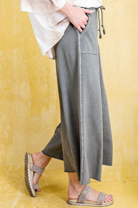 wide leg silhouette, Adjustable drawstring (yay) side pockets, unfinished trim relaxed and yummy
