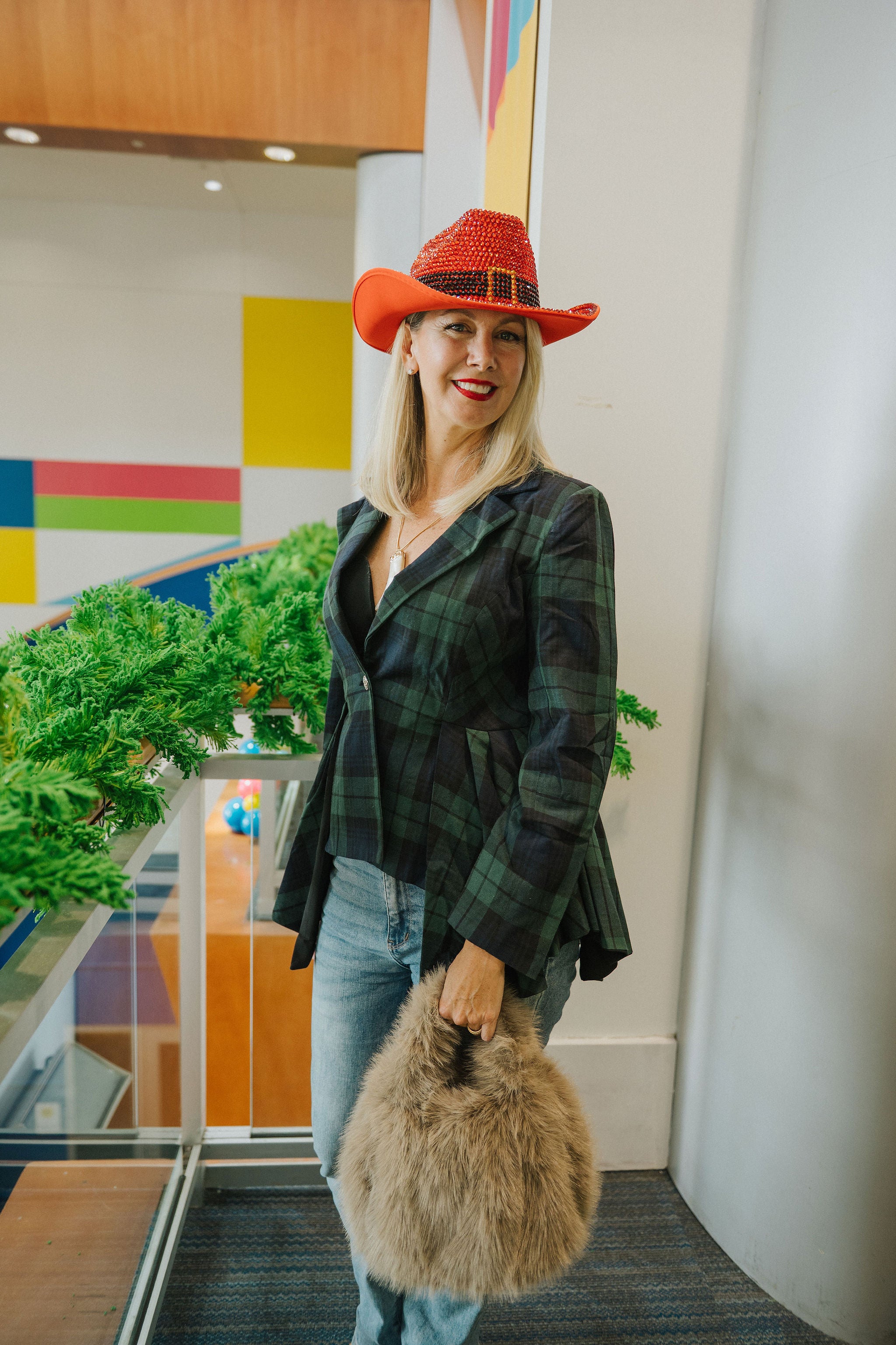 super soft two handle faux fur bag tan color adorable, approximately 12" X 10"